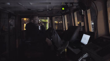 No News, the feature film debut by Lennart Hüper, accompanies the crew during the period of sitting tight, waiting for a redeeming and anchor-lifting judgment. Ten months—"You could have had a baby in that time!”—during which life out there goes on. Out there, on land and in the ocean, along the deadliest route of escape from Libya to Italy. Sober documentation of everyday life on the ship is interwoven with reports about displaced persons dying in the ocean, the emergency calls on the marine radio tell in staccato takt about boots in distress….